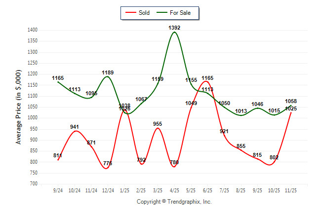 November 2025 Average For Sale Price was Neutral and Average Sold Price was Neutral**