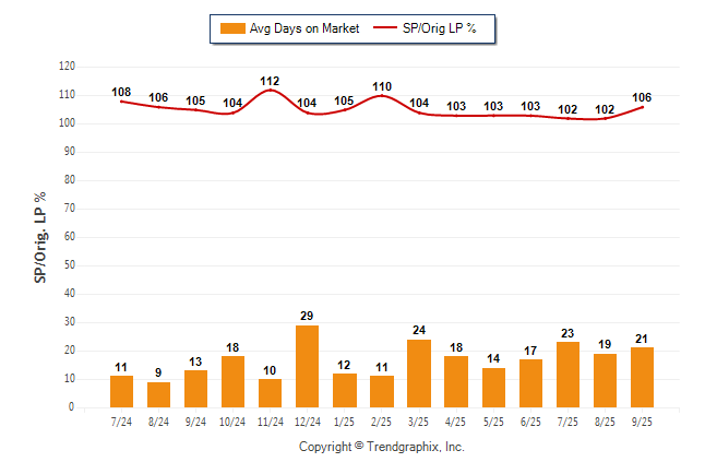 September 2025 Average Days on Market trend Remains Steady and Sold/Original List Price Ratio Remains Steady**