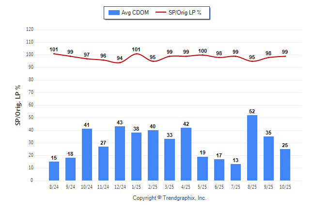 October 2025 Average Continuous Days on Market trend Remains Steady and Sold/Original List Price Ratio Remains Steady**
