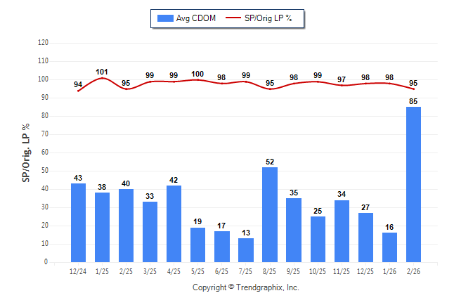 February 2026 Average Continuous Days on Market trend was Rising and Sold/Original List Price Ratio was Falling**