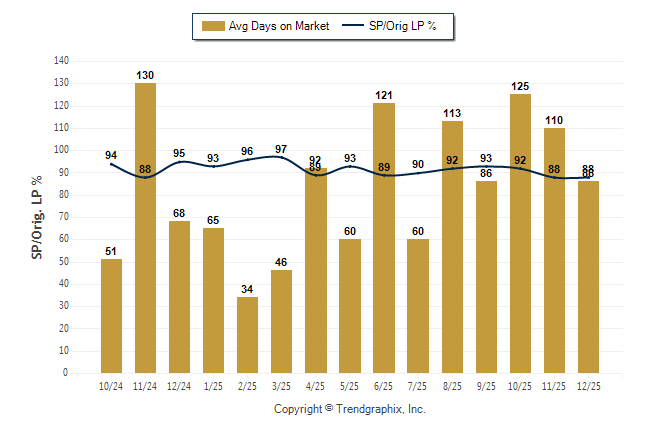 December 2025 Average Days on Market trend Remains Steady and Sold/Original List Price Ratio was Falling**