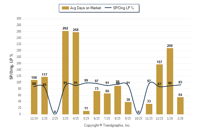 February 2026 Average Days on Market trend Remains Steady and Sold/Original List Price Ratio Remains Steady**