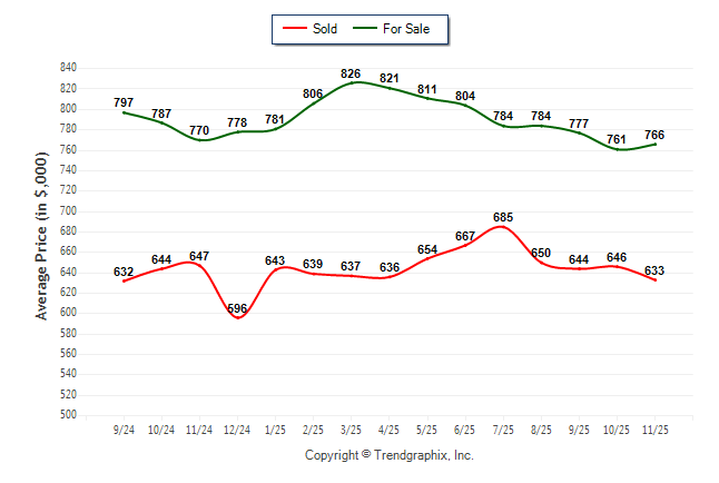 November 2025 Average For Sale Price was Neutral and Average Sold Price was Depreciating**