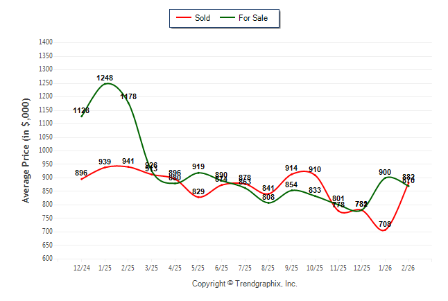 February 2026 Average For Sale Price was Neutral and Average Sold Price was Neutral**