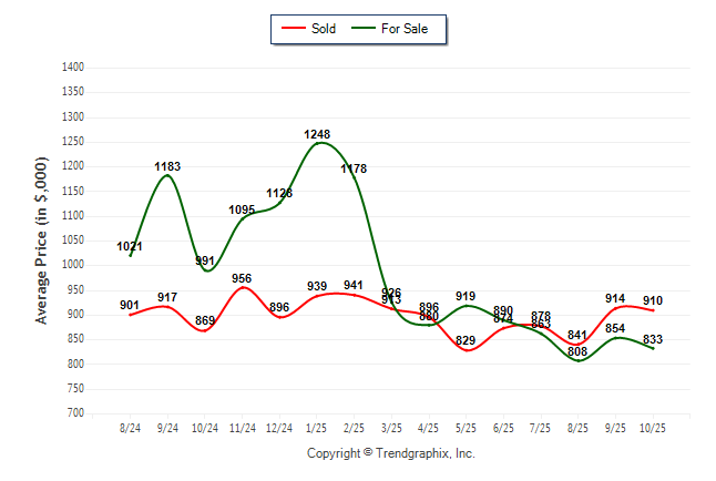 October 2025 Average For Sale Price was Neutral and Average Sold Price was Neutral**