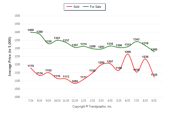 September 2025 Average For Sale Price was Neutral and Average Sold Price was Depreciating**