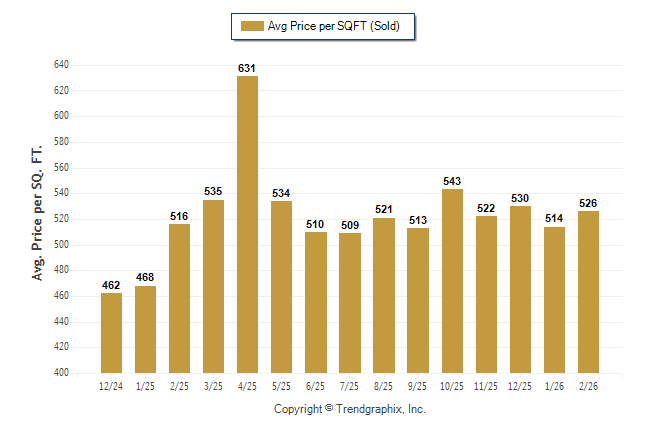 February 2026 Average Sold Price per Square Footage was Neutral**