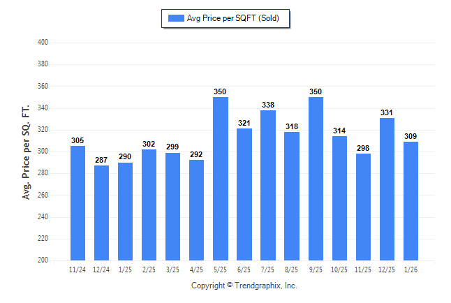 January 2026 Average Sold Price per Square Footage was Neutral**