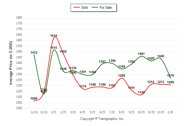 January 2026 Average For Sale Price was Depreciating and Average Sold Price was Neutral**
