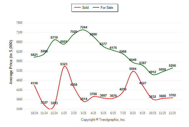 December 2025 Average For Sale Price was Neutral and Average Sold Price was Neutral**