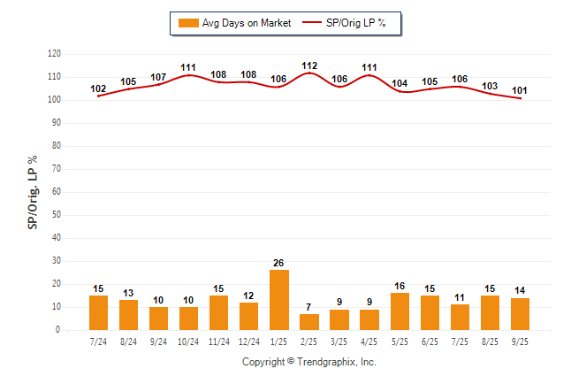 September 2025 Average Days on Market trend Remains Steady and Sold/Original List Price Ratio was Falling**