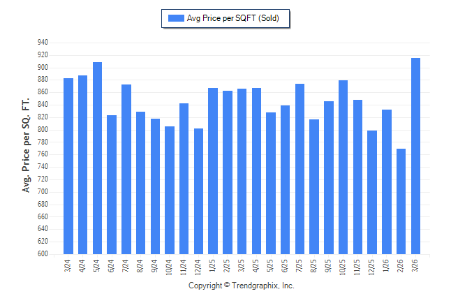 March 2026 Average Sold Price per Square Footage was Appreciating**