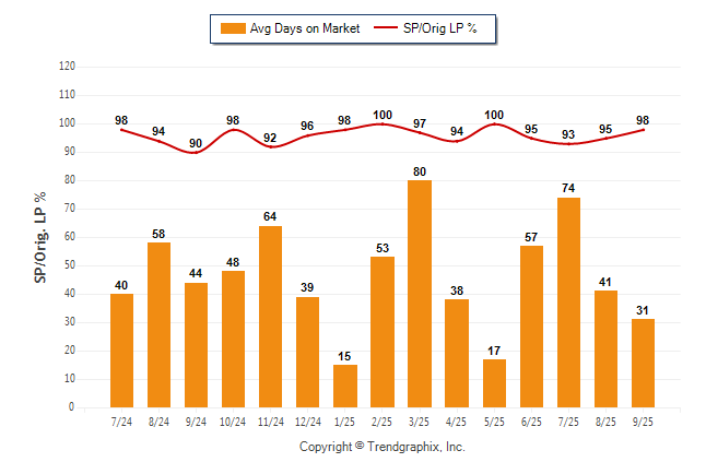 September 2025 Average Days on Market trend Remains Steady and Sold/Original List Price Ratio Remains Steady**