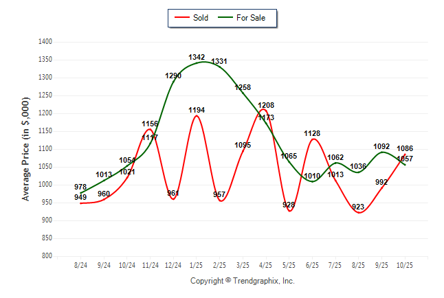 October 2025 Average For Sale Price was Neutral and Average Sold Price was Neutral**