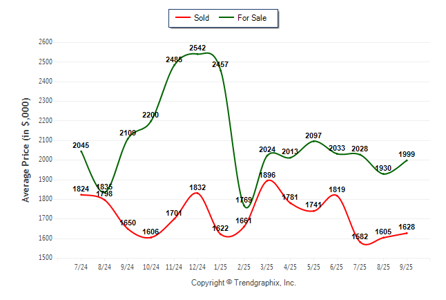 September 2025 Average For Sale Price was Neutral and Average Sold Price was Neutral**