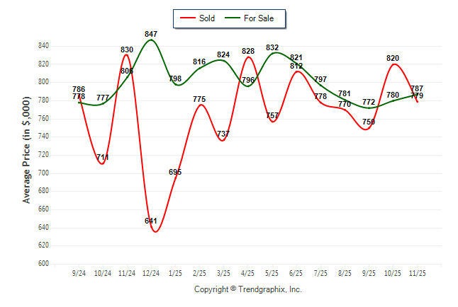 November 2025 Average For Sale Price was Neutral and Average Sold Price was Neutral**