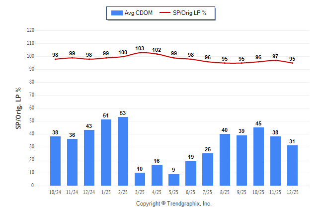 December 2025 Average Continuous Days on Market trend Remains Steady and Sold/Original List Price Ratio Remains Steady**