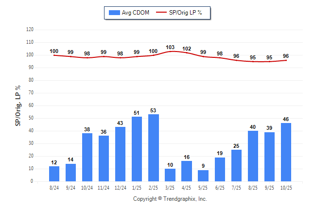 October 2025 Average Continuous Days on Market trend was Rising and Sold/Original List Price Ratio Remains Steady**
