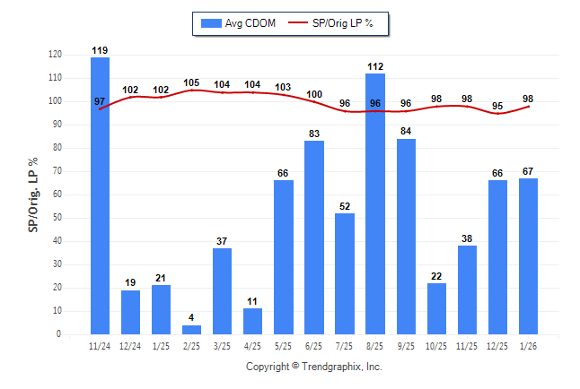 January 2026 Average Continuous Days on Market trend Remains Steady and Sold/Original List Price Ratio Remains Steady**