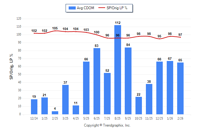 February 2026 Average Continuous Days on Market trend Remains Steady and Sold/Original List Price Ratio Remains Steady**