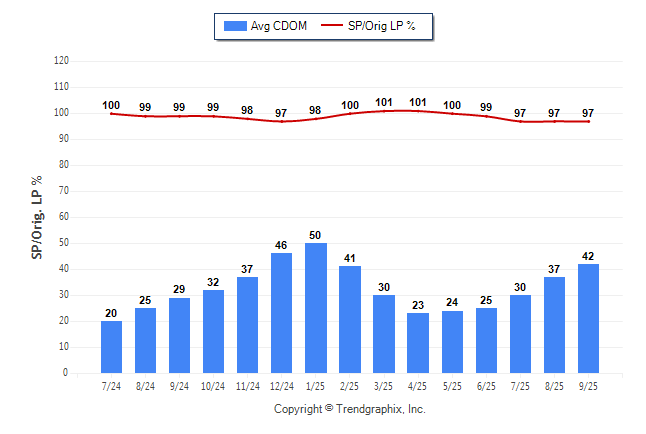 September 2025 Average Continuous Days on Market trend was Rising and Sold/Original List Price Ratio was Falling**