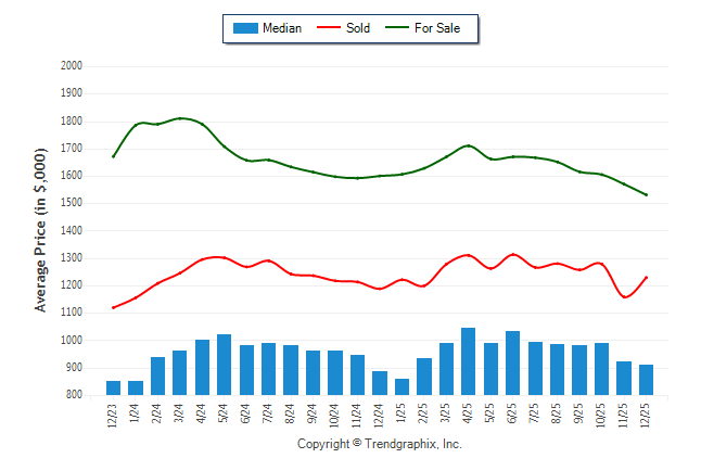 December 2025 Median Price was Depreciating, Avg. For Sale Price was Depreciating, and Avg. Sold Price was Neutral**