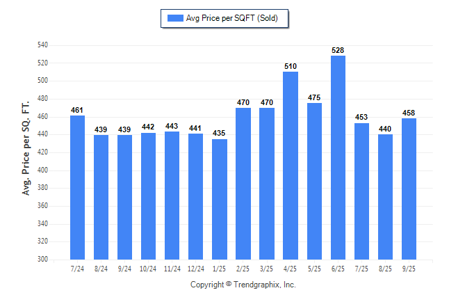 September 2025 Average Sold Price per Square Footage was Neutral**