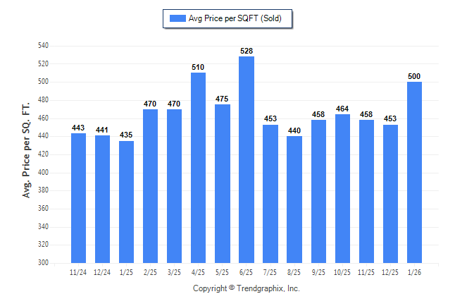 January 2026 Average Sold Price per Square Footage was Appreciating**