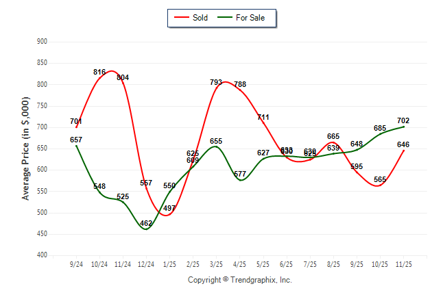 November 2025 Average For Sale Price was Appreciating and Average Sold Price was Neutral**