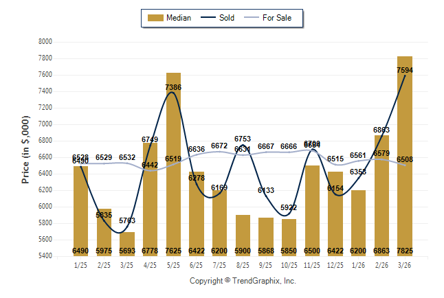 March 2026 Median Price was Appreciating, Avg. For Sale Price was Depreciating, and Avg. Sold Price was Appreciating**