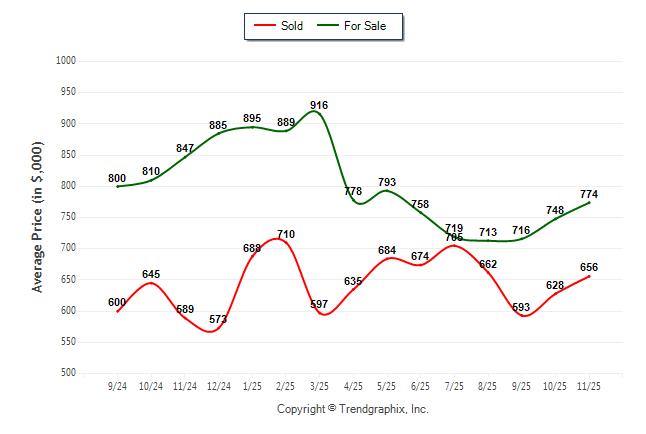 November 2025 Average For Sale Price was Appreciating and Average Sold Price was Neutral**