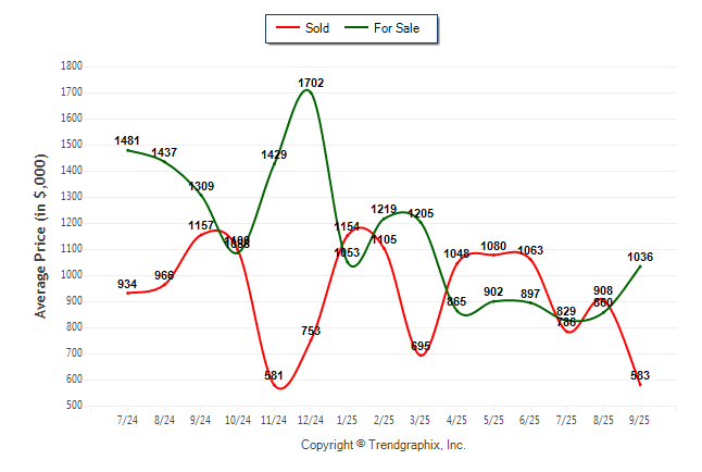 September 2025 Average For Sale Price was Appreciating and Average Sold Price was Depreciating**