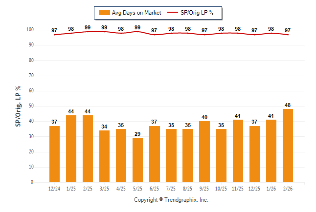 February 2026 Average Days on Market trend was Rising and Sold/Original List Price Ratio was Falling**