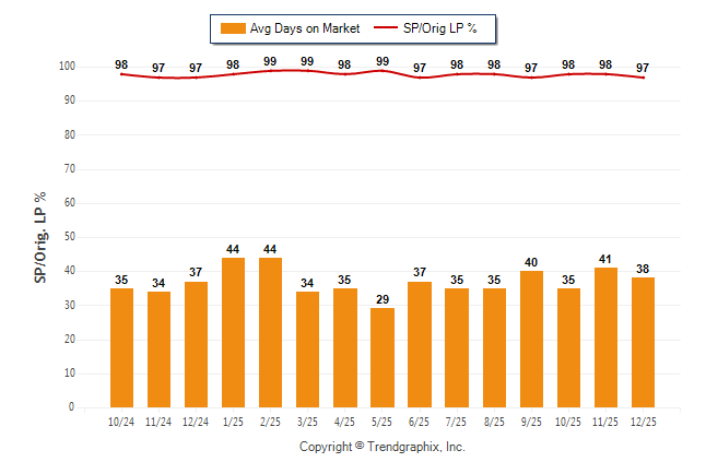 December 2025 Average Days on Market trend Remains Steady and Sold/Original List Price Ratio Remains Steady**
