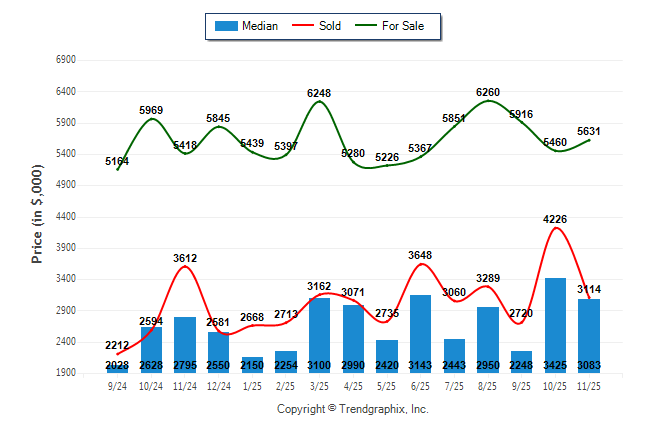 November 2025 Median Price was Neutral, Avg. For Sale Price was Neutral, and Avg. Sold Price was Neutral**