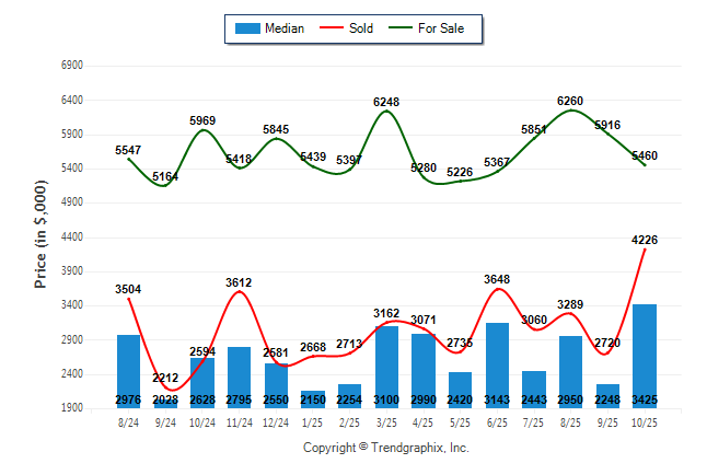 October 2025 Median Price was Appreciating, Avg. For Sale Price was Neutral, and Avg. Sold Price was Appreciating**