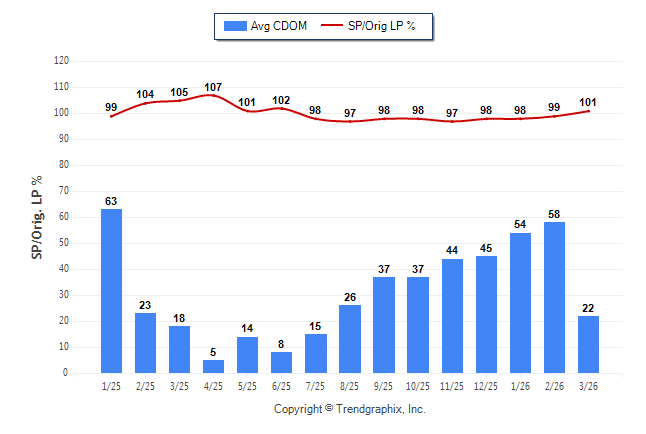 March 2026 Average Continuous Days on Market trend Remains Steady and Sold/Original List Price Ratio was Rising**