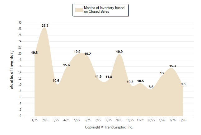 Curnt vs. Same Month 1 Yr Ago: Months of Inventory (Closed Sales)