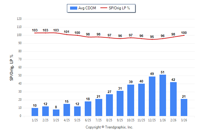 March 2026 Average Continuous Days on Market trend was Falling and Sold/Original List Price Ratio was Rising**