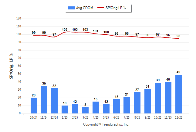 December 2025 Average Continuous Days on Market trend was Rising and Sold/Original List Price Ratio was Falling**