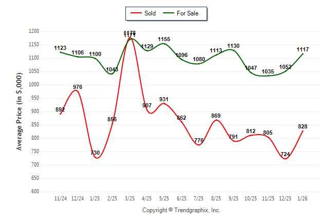 January 2026 Average For Sale Price was Neutral and Average Sold Price was Neutral**