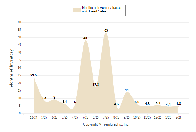 Curnt vs. Same Month 1 Yr Ago: Months of Inventory (Closed Sales)