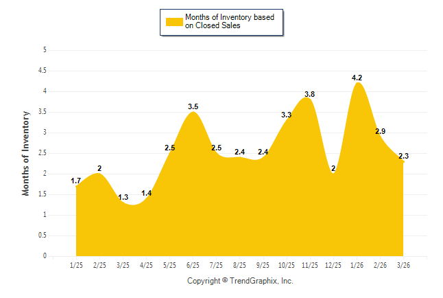 Curnt vs. Same Month 1 Yr Ago: Months of Inventory (Closed Sales)