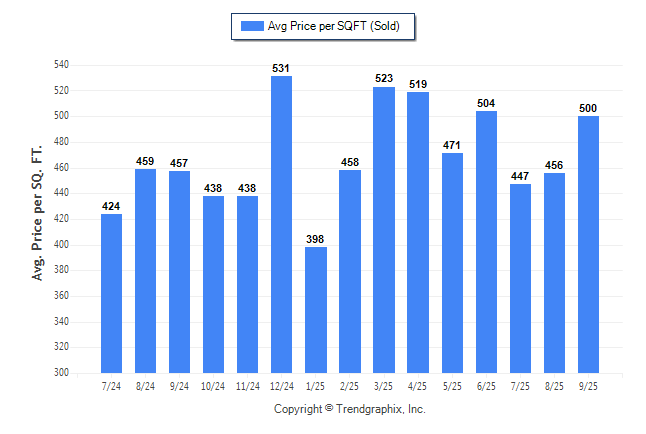 September 2025 Average Sold Price per Square Footage was Neutral**