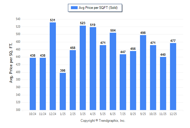 December 2025 Average Sold Price per Square Footage was Neutral**