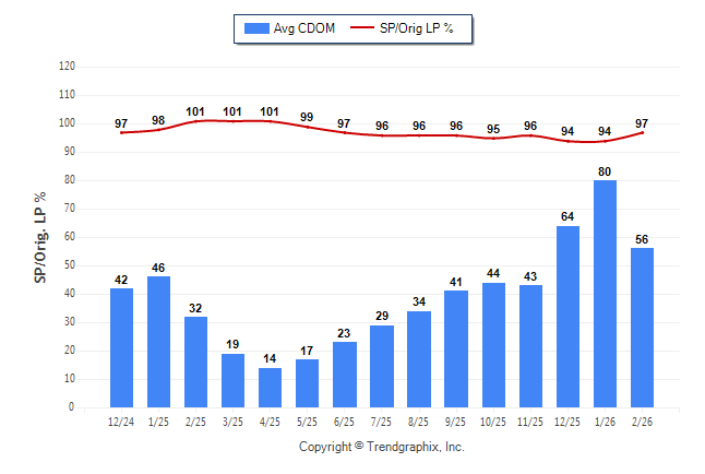 February 2026 Average Continuous Days on Market trend Remains Steady and Sold/Original List Price Ratio Remains Steady**