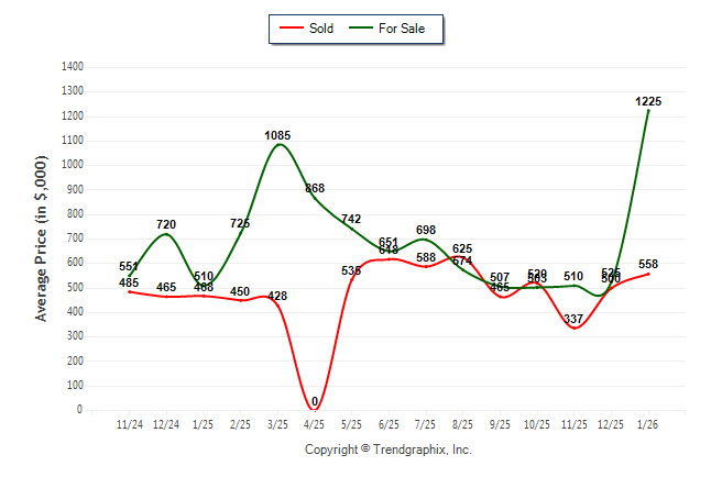 January 2026 Average For Sale Price was Appreciating and Average Sold Price was Neutral**