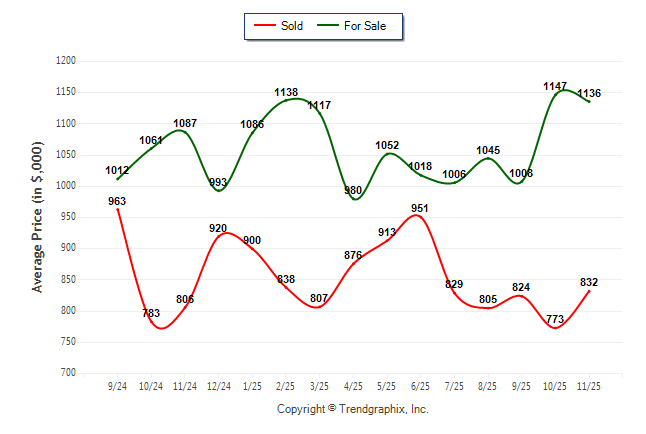 November 2025 Average For Sale Price was Neutral and Average Sold Price was Neutral**