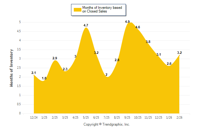 Curnt vs. Same Month 1 Yr Ago: Months of Inventory (Closed Sales)