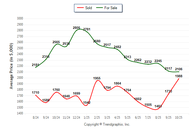 October 2025 Average For Sale Price was Depreciating and Average Sold Price was Appreciating**